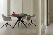 Dat is natuurlijk afhankelijk van verschillende factoren. Hoe groot is de ruimte waar de tafel komt te staan? Met hoeveel mensen zit je regelmatig aan tafel? Welke stoelen kies je: met armleuning of zonder armleuning? Zorg er in ieder geval voor dat de tafel genoeg ruimte biedt aan de stoelen die erom heen staan. Zorg dat je comfortabel naast elkaar kan zitten en dat er voldoende bewegingsruimte is. Een grote tafel met 6 of 8 stoelen is natuurlijk ideaal, maar dat past niet altijd in de ruimte waar het komt te staan. Kies dan bijvoorbeeld voor een kleinere tafel op een kolompoot: dan heb je geen last van poten die op een hoek staan en onnodige ruimte innemen. Bovendien kan je gemakkelijk met je stoelen helemaal rondom de tafel zitten.